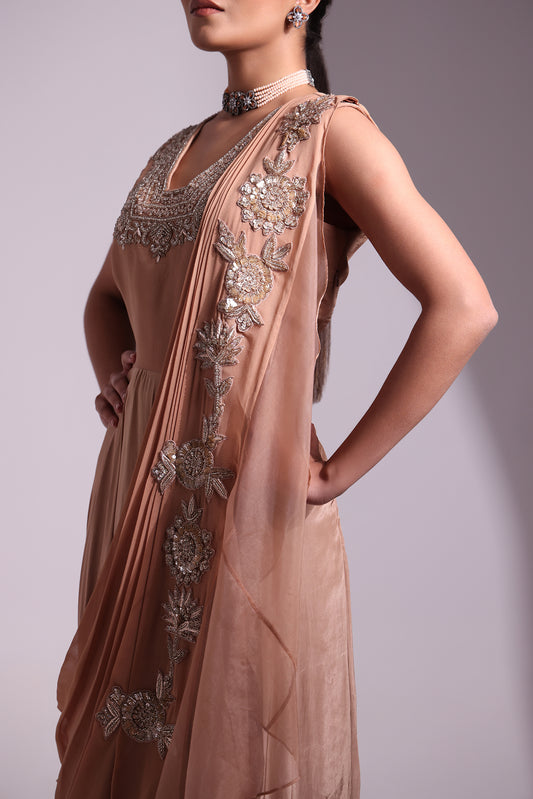 BEIGE GOLD DRESS DRAPE WITH LONG JACKET