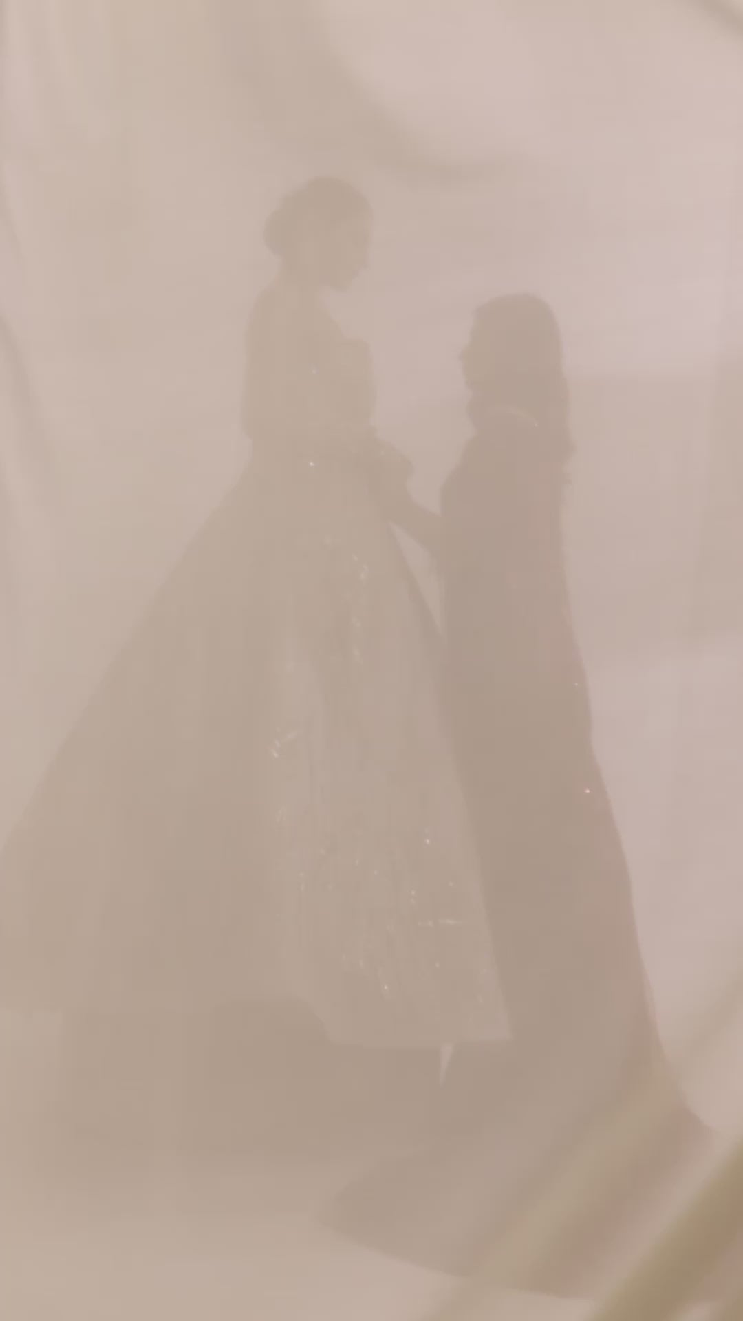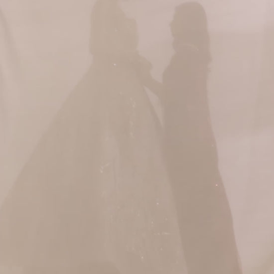 Ivory couture Ball gown is embellished with studs ,sequence and cut- dana for your special day.It is paired with beautiful embellished hand cuffs.